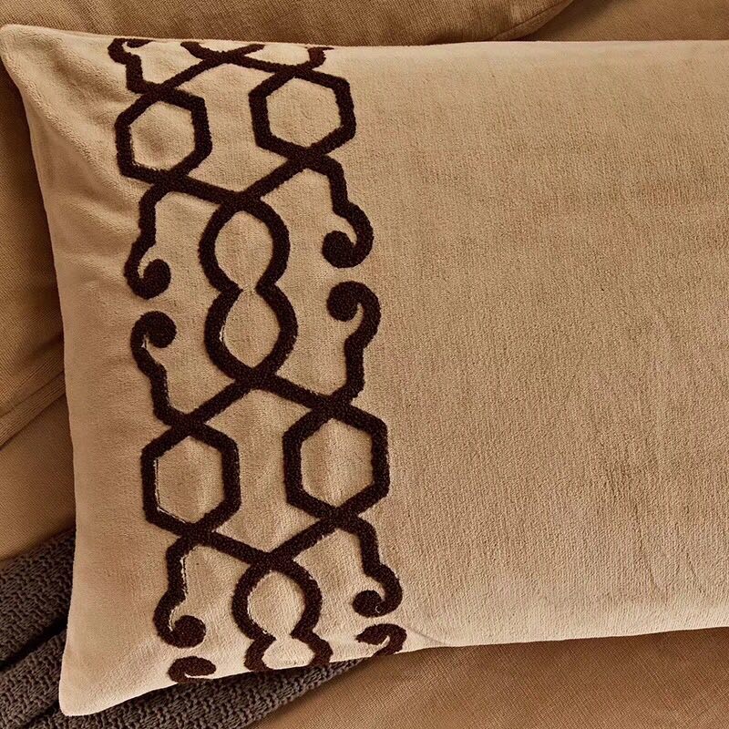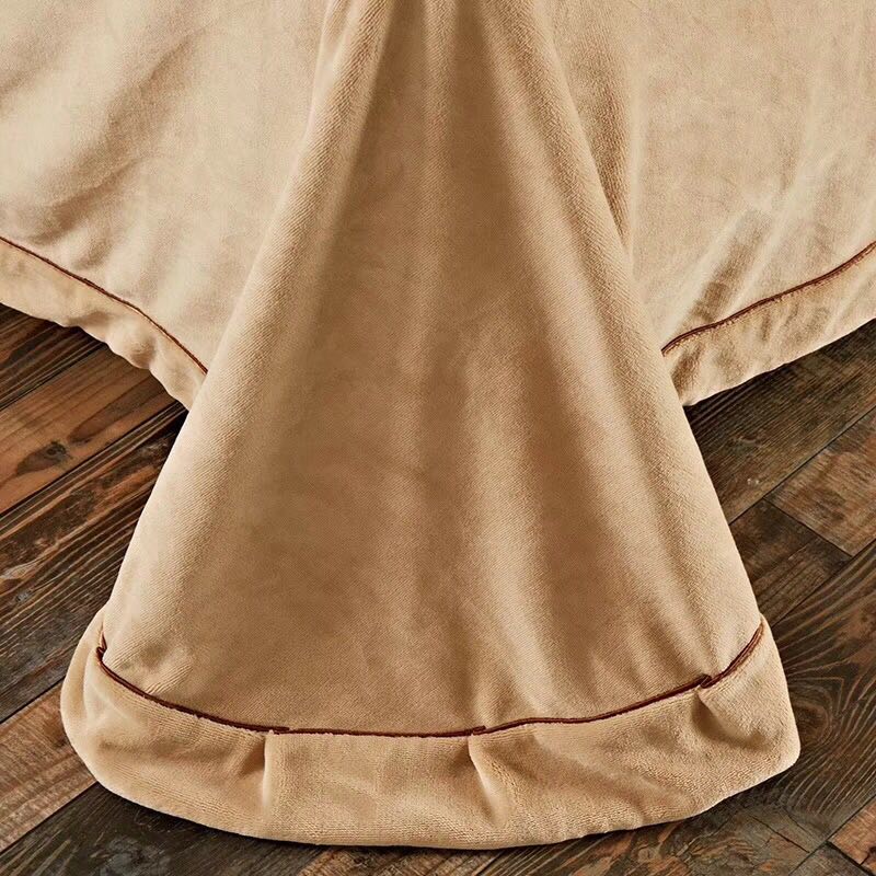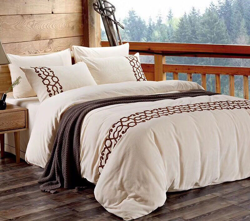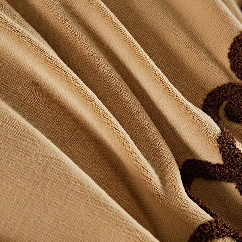 【工藝】高標準縫制 不同顏色的面料拼接 特種毛巾繡 床單均采用圓弧打裥貼邊 繡花內襯全部采用精致歐根紗 隱形拉鏈做工 每一個細節都是在追求完美。可改床笠款